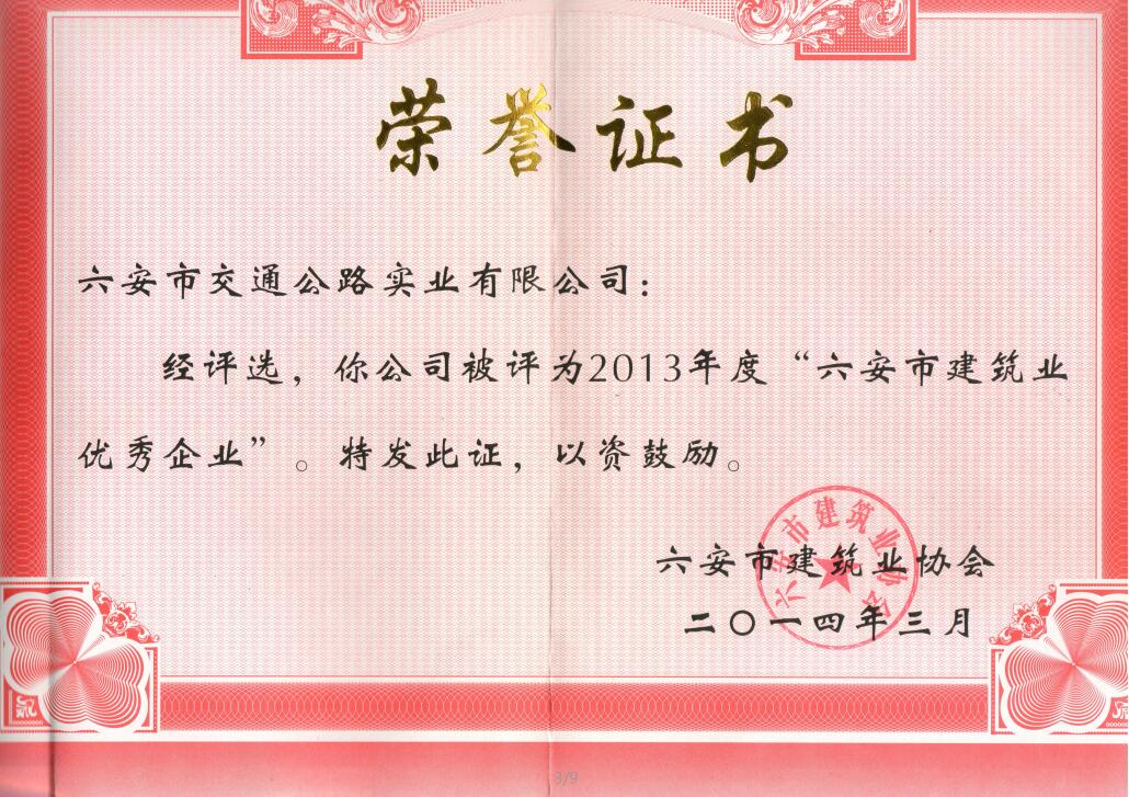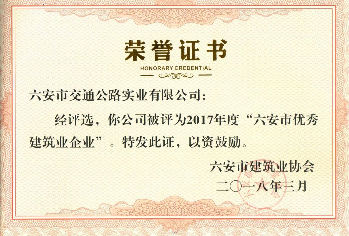 六安市優(yōu)秀建筑業(yè)企業(yè)