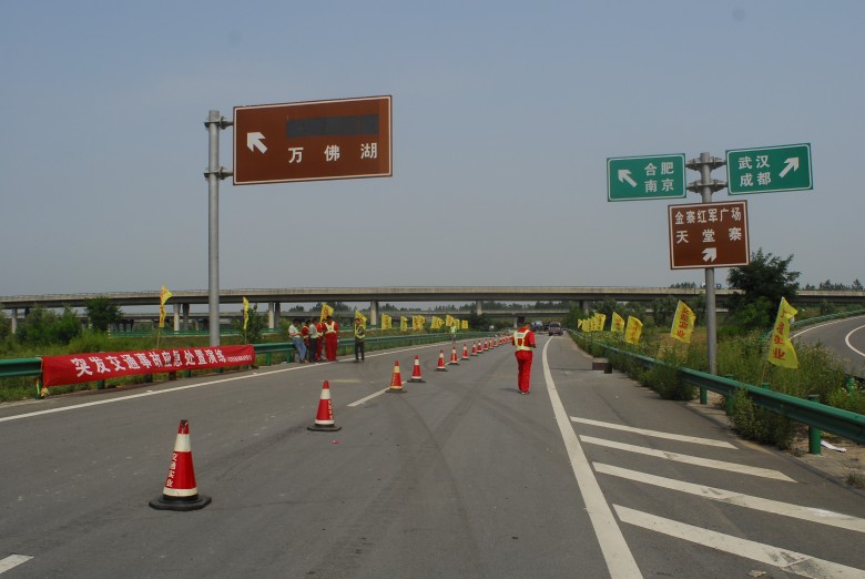為進(jìn)一步提高公司應(yīng)急機(jī)制和處置水平, 2013年6月21下午3點(diǎn)在合六葉高速公路大顧店互通施工區(qū)域內(nèi)進(jìn)行了突發(fā)交通事故應(yīng)急演練活動(dòng)。公司領(lǐng)導(dǎo)、六安高速公路交警一大隊(duì)、合六葉高速公路路政大隊(duì)及高速公路六安管理公司的相關(guān)領(lǐng)導(dǎo)參加了演練活動(dòng)。