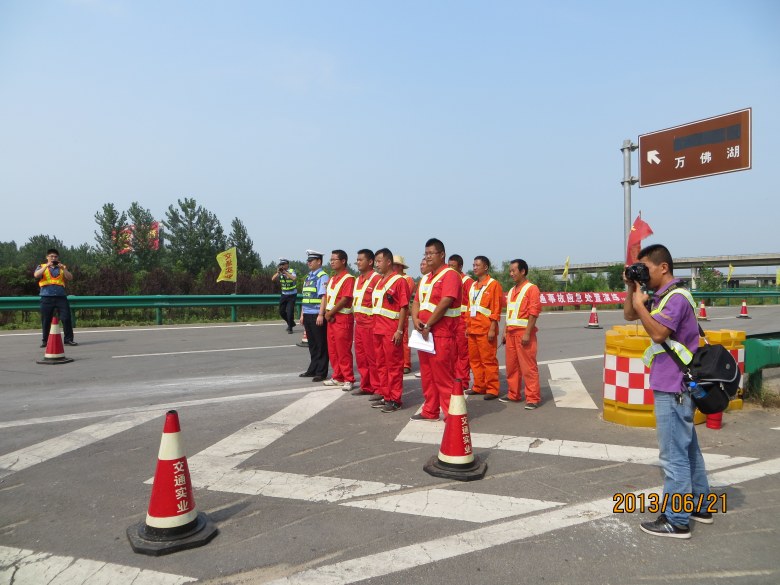 為進一步提高公司應(yīng)急機制和處置水平, 2013年6月21下午3點在合六葉高速公路大顧店互通施工區(qū)域內(nèi)進行了突發(fā)交通事故應(yīng)急演練活動。公司領(lǐng)導(dǎo)、六安高速公路交警一大隊、合六葉高速公路路政大隊及高速公路六安管理公司的相關(guān)領(lǐng)導(dǎo)參加了演練活動。
